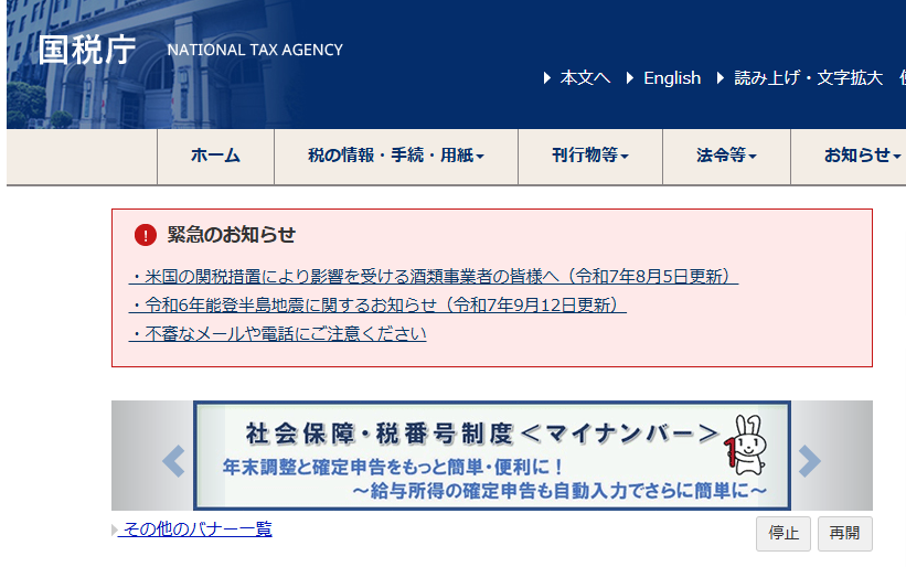 例えば、以下のような国税庁のWebサイトを見ているとします。