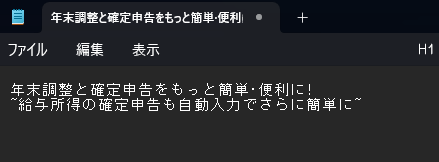 以下のように、バナー画像の中にあった「年末調整と確定申告をもっと簡単・便利に!」という文章が、そのままテキストデータとしてペーストできました。