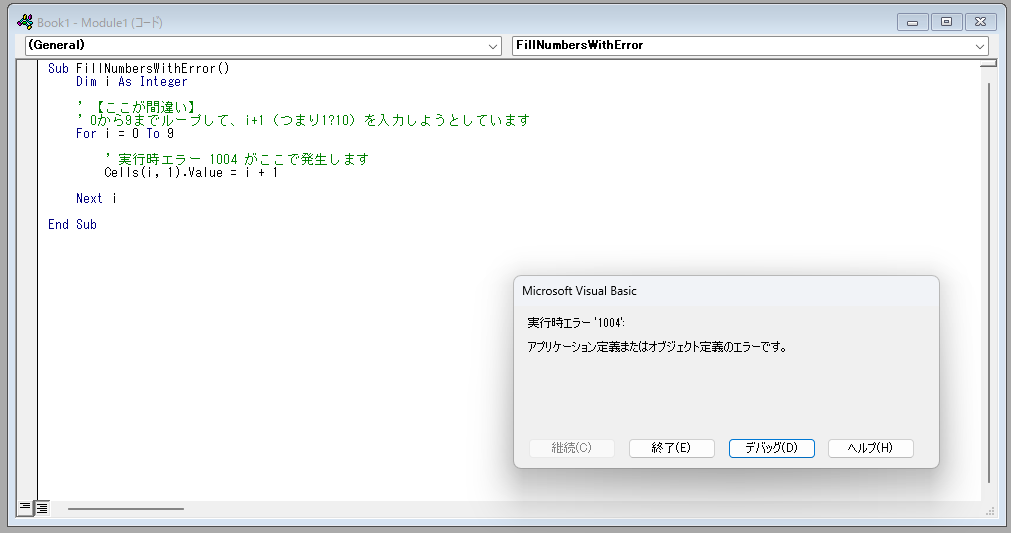 例えばプログラミングやExcelのマクロを組んでいるとき、以下のようなエラー画面が出て困ったことはありませんか?