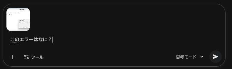 このとき、エラー画面をわざわざ「名前を付けて保存」して、AIに「アップロード」する必要はありません。